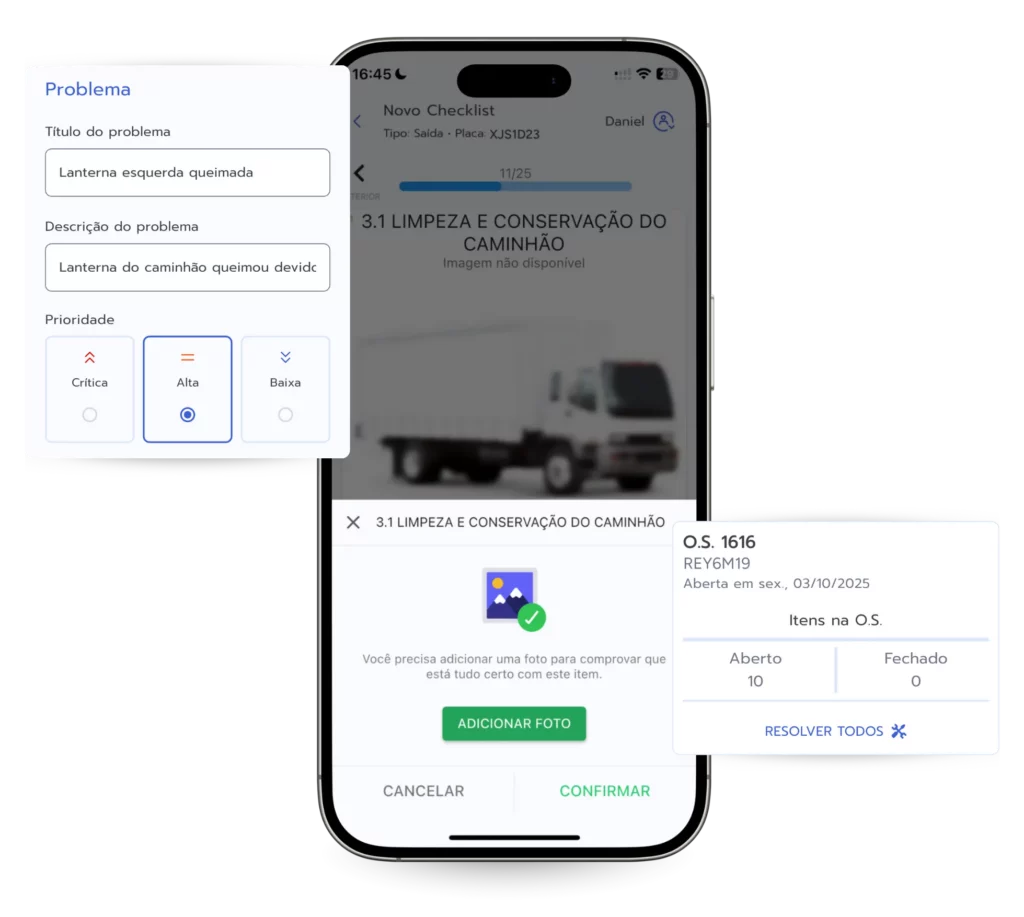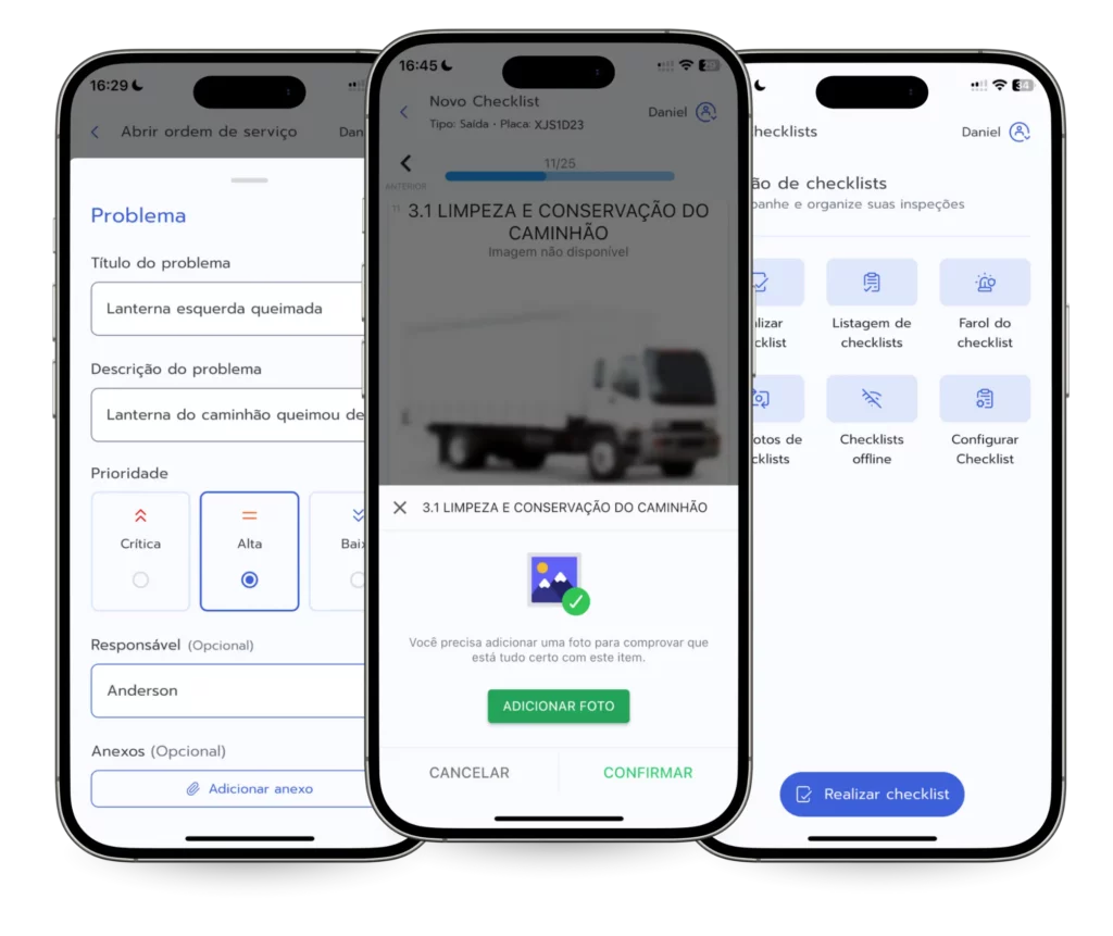 Sim. Você pode incluir fotos no checklist, de acordo com a necessidade da frota.