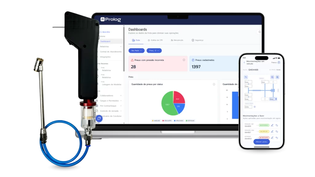 Ao aderir a solução de Gestão de Pneus do Prolog, sua operação contará com nosso exclusivo equipamento de inspeção eletrônica. Com ele, realize a coleta dos dados de forma mais ágil e precisa, incluindo os dados de forma instantânea ao sistema. Para os pneus que apresentam desconformidade, Ordens de Serviços para sua correção ou manutenção são geradas automaticamente.
